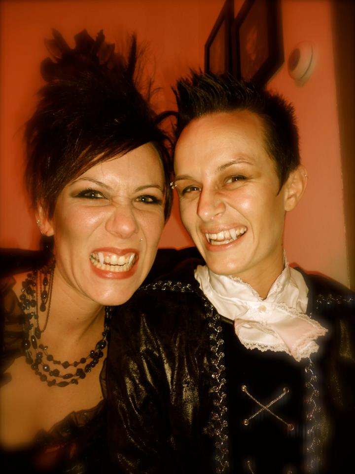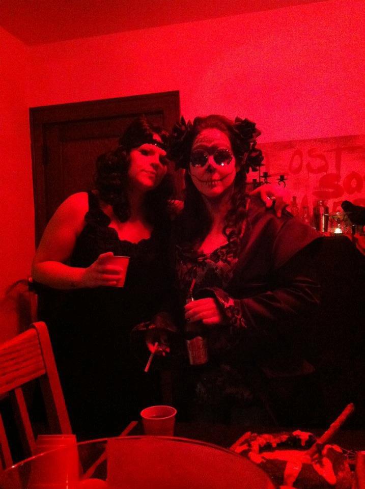 It’s time for another bit of random fun. If you’ve checked out my About This Blog page, you know a bit about my annual Halloween party. This party started out in my garage which I would transform into a haunted wonderland. The past few years, however, I have commandeered the BBF’s house and made them my more than willing cohorts. Every room has its own theme: living room is the witches coven, bathroom is the bloodbath, dining room–vampire lair, kitchen–mad scientist’s lab. The party always has a strict “must wear a costume to enter” policy. Beware: If you try to attend without wearing a costume we’ve been known to accost you and paint your face, dishevel your hair and add accessories until we feel you are party-worthy. We also prepare Halloween food for your fright and delight. Many of the recipes I share with you are served at our shin-digs. So, this post is a maniacal montage of Halloween’s past. An homage to all of my friends who love Halloween just as much as I do. Enjoy!