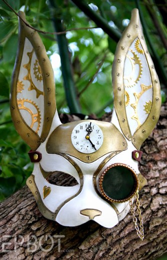Welcome to a whole different level in the making of rabbit ears. Isn’t this cool as feck? Love it! This great rabbit ear, mask combo is a kick ass must if you’re planning to take your costume the steampunk route. The instructions for this DIY are detailed and accompanied by photos at various stages in the making–super helpful!