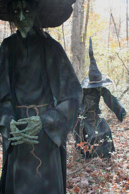 Here’s another creepy-cool idea I found on Pinterest. There’s no DIY with this one, but it would be simple enough to make: a mannequin or a sewing form, a styrofoam wig head, cover them with dark fabric and then drape it in tulle or gauze or something.